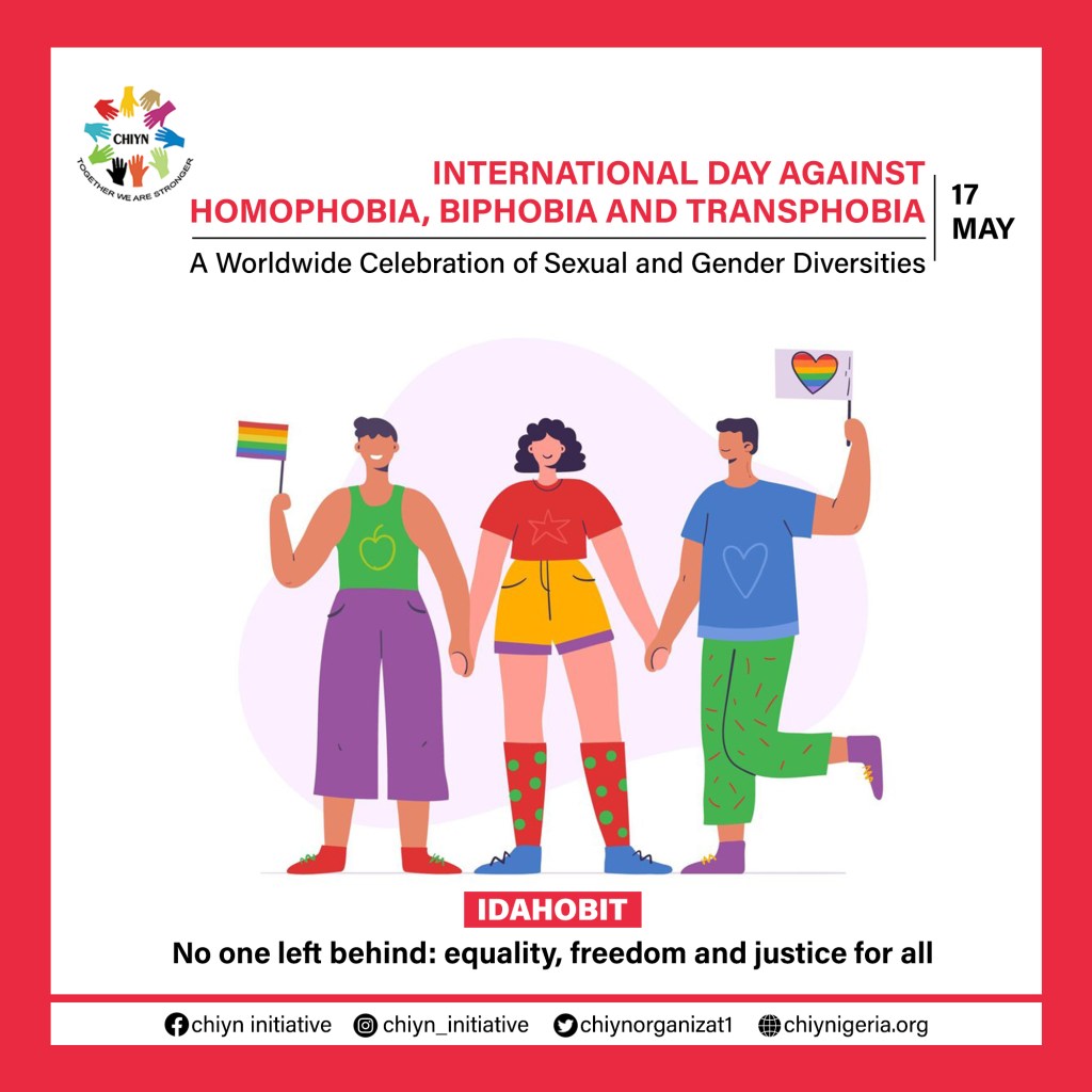 The International Day Against Homophobia, Biphobia and Transphobia themed: “No one left behind: equality, freedom and justice for all”, is observed on May 17 and aims to coordinate international events that raise awareness of LGBT rights violations and stimulate interest in LGBT rights work worldwide.