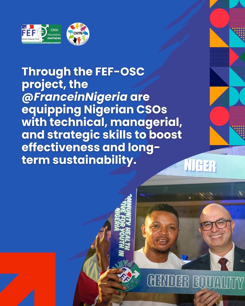 “Empowering Nigerian organizations with the skills to thrive. Proudly supported by @FranceinNigeria. CHIYN is proud to be officially part of the FEFOSC2025. Together we are stronger. FEFOSC #FrenchEmbassyNG #YouthVoices #QueerInclusion #GrassrootsPower #PublicHealth #CivilSocietyStrong #CHIYN #CommunityHealth #SolidarityInAction #NorthernNigeriaVoices Womenandgirls Progress #GenderEquality